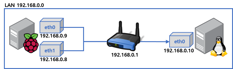 192.168.0.8은 b8:27인 eth0을 통해 전송되고, 192.168.0.9는 00:e0인 eth1을 통해 전송되는 것을 최종적으로 확인할 수 있었다.