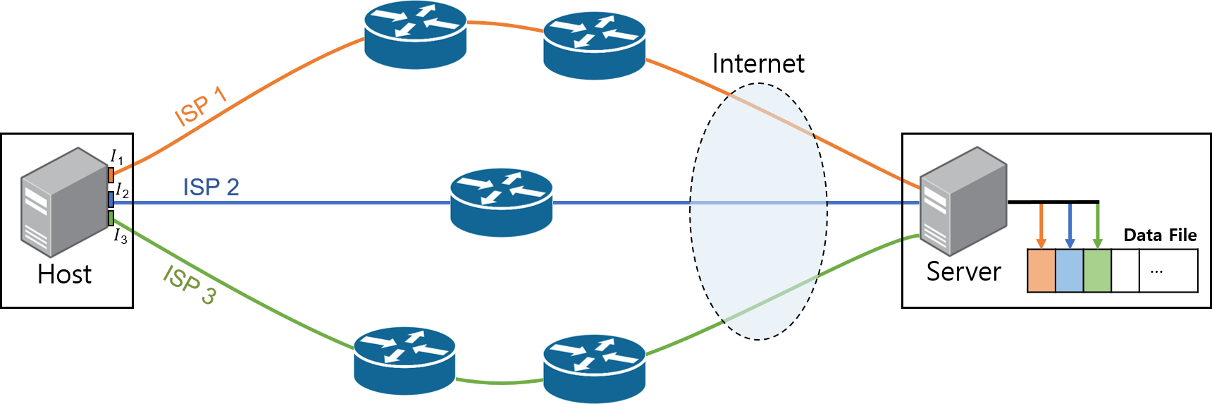 기존에는 PSocket이라는 특수한 라이브러리를 통해 다중 네트워크 인터페이스를 제어하였다고 한다. 그러나 해당 방법은 서버와 클라이언트의 소프트웨어 수정이 필요한 복잡한 과정이 추가적으로 발생하여 HTTP Range Request 방식을 제안하였다고 한다.