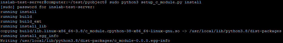 해당 출력이 발생하였다면 정상적으로 C 코드가 Python 모듈로 등록된 것이다.