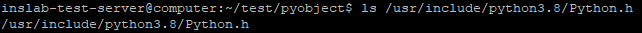 위 그림과 같이 /usr/include/python3.8/Python.h 경로에 파일이 존재하는 것을 확인할 수 있었다.