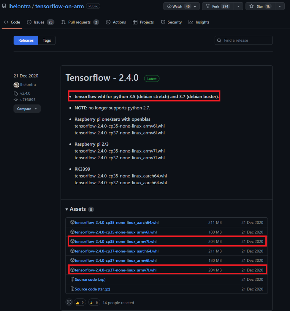 $ sudo pip3 install --upgrade https://github.com/lhelontra/tensorflow-on-arm/releases/download/v2.4.0/tensorflow-2.4.0-cp37-none-linux_armv7l.whl