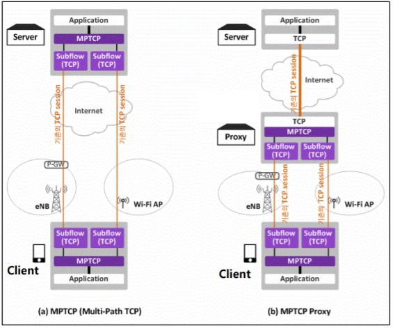 MPTCP는 Multipath TCP의 약자로, IETF Multipath TCP WG에서 표준을 주도하고 있으며, 기존 TCP Stream을 여러 개 묶어서 하나의 Application에서 데이터를 주고받는데 사용하는 프로토콜이다.