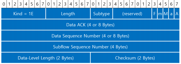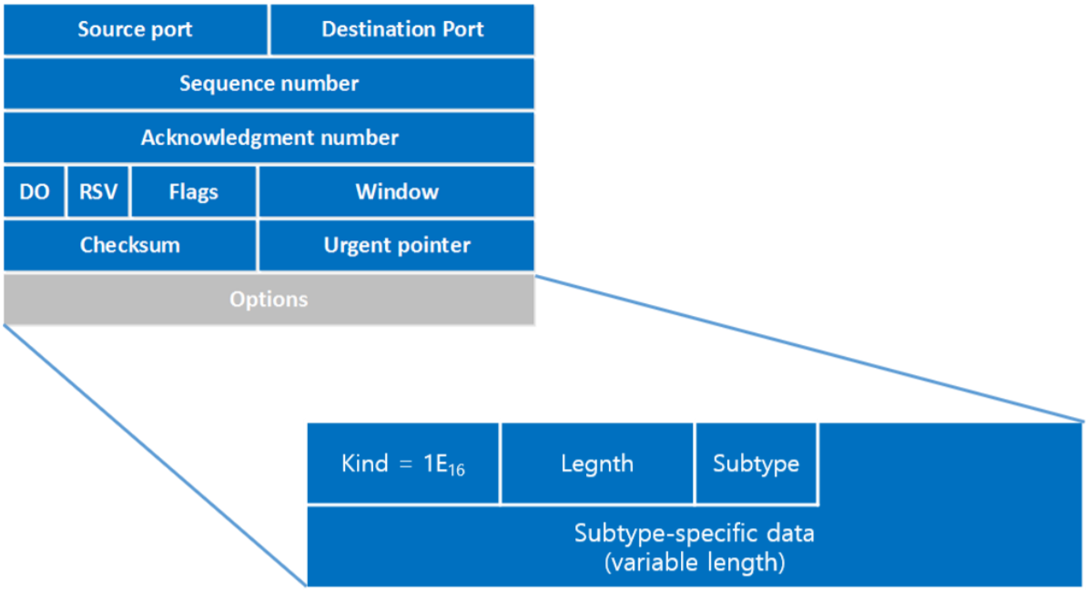또한, MPTCP Packet은 TCP Option의 하위 필드인 Kind 필드에 10진수 30값(16진수 1E)으로 고정한다.