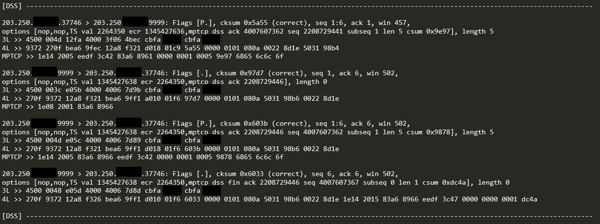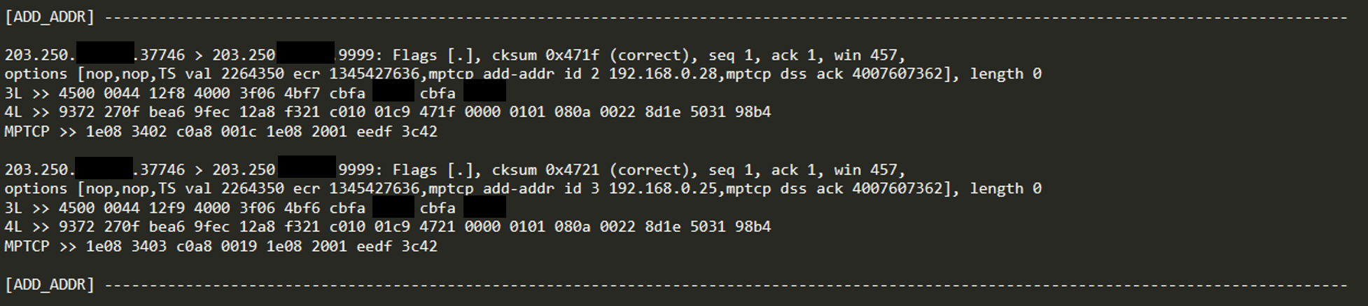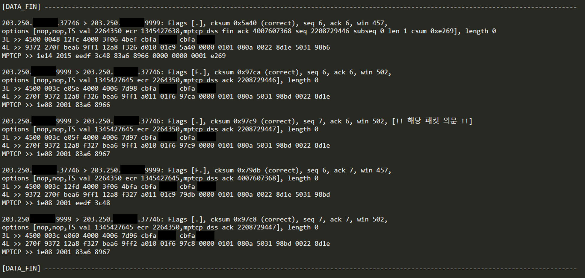 실제 MPTCP 패킷 캡쳐