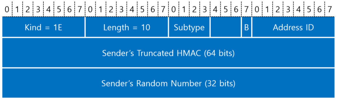 : 새 Subflow의 연결 요청 응답(SYN/ACK + MP_JOIN) 패킷의 길이를 나타낸다. - Sender's Truncated HMAC