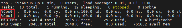 top 명령을 실행시킨 뒤 숫자 1을 누르게 되면, Host 머신에서 사용가능한 CPU 코어 수와 각 코어의 점유율을 확인할 수 있다.