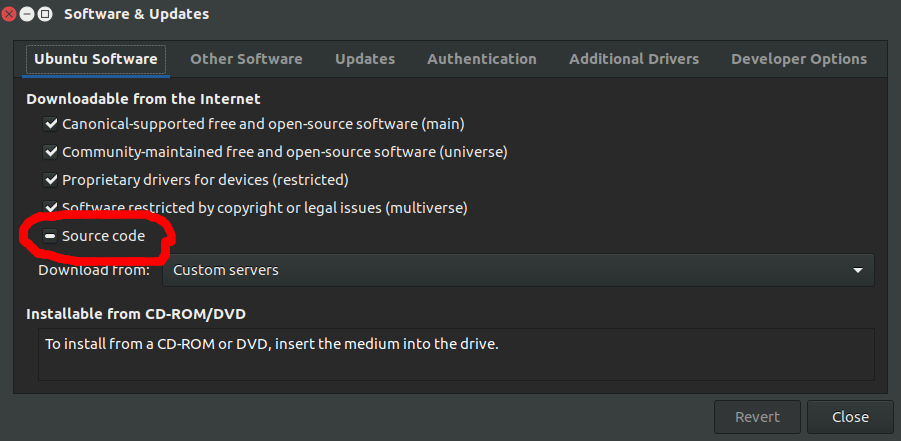 $ sudo sed -Ei 's/^# deb-src /deb-src /' /etc/apt/sources.list