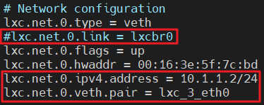 (host)$ sudo vi /var/lib/lxc/ubuntu-lxc-3/config