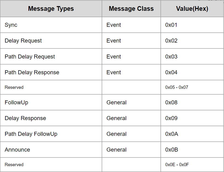 메시지 타입에 대한 설명은 다음 gPTP Message Types 섹션에서 설명한다.